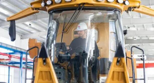宫照旭在公司厂区内查看其生产的水田筑埂机