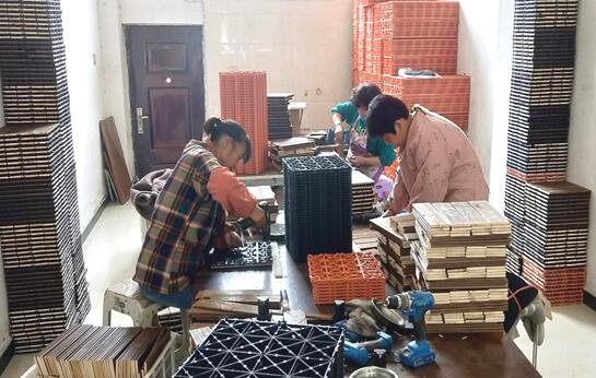如果說顧家大酒店是一個從無到有的進程,那麽泗洪縣閑適實木製品廠便是一個從小到大、紮根擴枝的進程。泗洪縣閑適實木製品廠是創業一條街第一家做電商的企業。2020年8月,通過屢次了解調查,李雷雨配偶在各大網絡渠道註冊了碳化之家、愛逸家居等3家店肆,運營出售野外陽臺防腐木地板、碳化木室內庭院天臺花園防滑DIY地鋪拼接地板等,年出售額在500萬元左右。為進一步擴大運營出售規模、帶動「家門口」作業,在政府的鼓勵支撐下,李雷雨配偶註冊了閑適實木營業執照,並在創業一條街租借了150余平方米的門市,優先招聘鄰近居民從事DIY地鋪拼接作業,由於操作簡略、時間靈敏、計件付費、收入可觀等原因,吸引了鄰近很多留守婦女、老人前來應聘,帶動了20余名大眾作業。